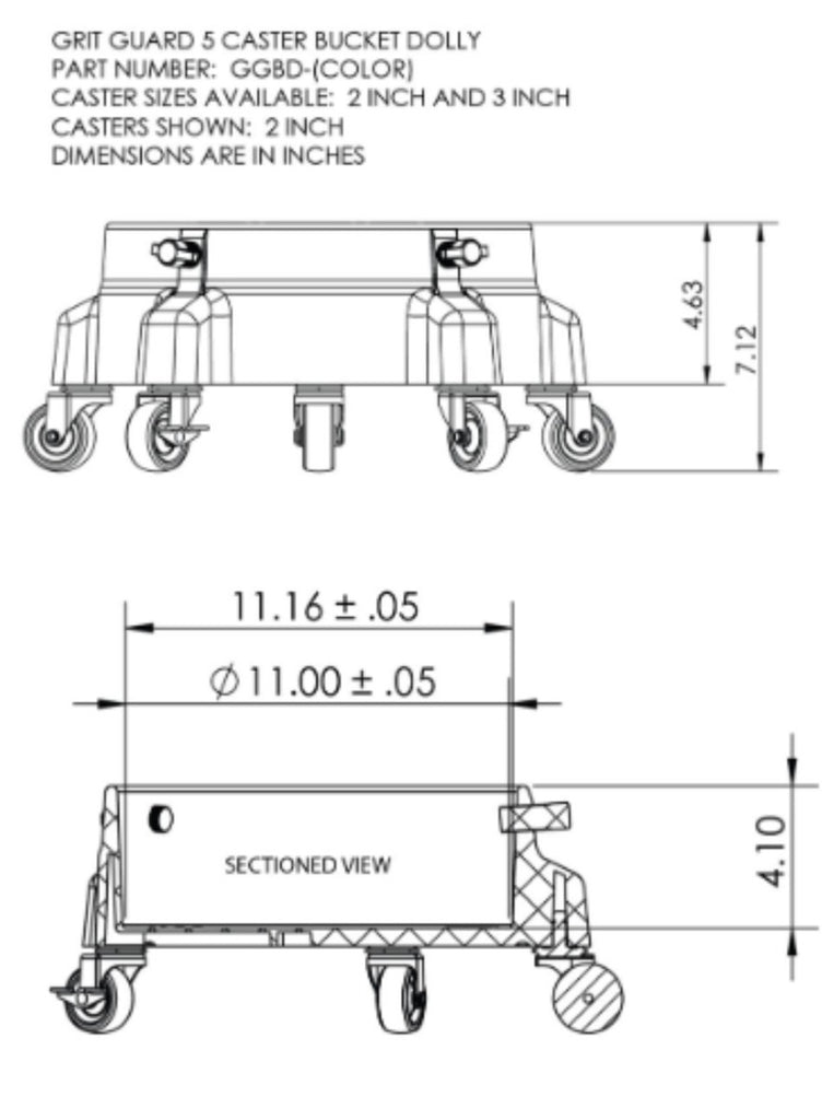 The Grit Guard Bucket Dolly features 5 heavy-duty urethane casters that last longer and roll smoothly over cracks. Two of the casters lock, holding your bucket in place even on steep inclines.